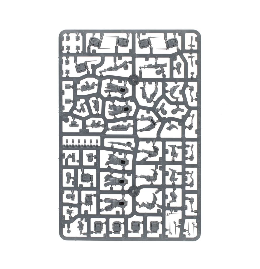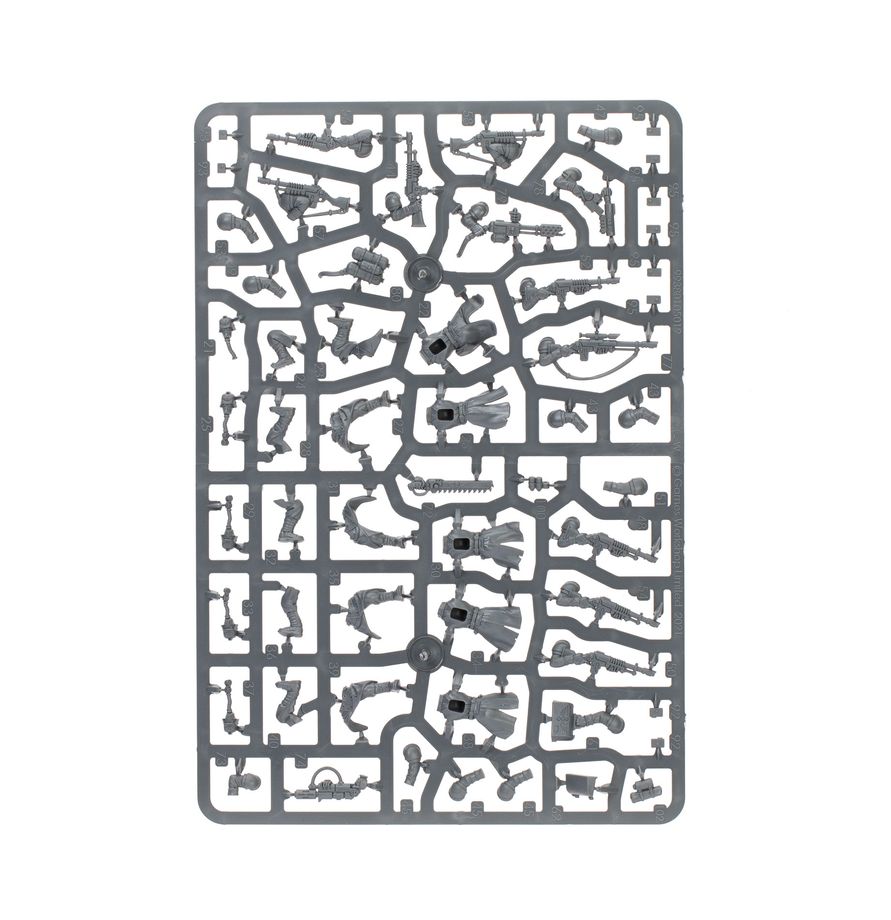 This kit is extremely versatile, with lots of options to customise your unit. One miniature can be built as a Watchmaster – armed with a plasma pistol, laspistol, or bolt pistol, and a chainsword or power weapon in the other hand. One miniature can be equipped with a sharpshooter's long-las, one with a flamer, one with a grenade launcher, and one with a plasma gun or meltagun. The vox-operator can be assembled with either binoculars or a grenade in their left hand, and one miniature can be built carrying a medi-pack. There are also plenty of cosmetic accessories to further decorate your miniatures, including bayonets, pickaxes, belt pouches, grenades, and more.