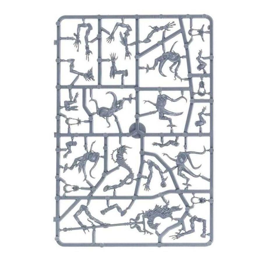 This set contains ten multi-part, multi-limbed plastic Pink Horrors. This set includes all of the components needed to assemble a hornblower, an icon bearer (with immense, flaming Tzeentchian icon) and an Iridescent Horror, a champion who gleefully doles out death with his grasping hands.