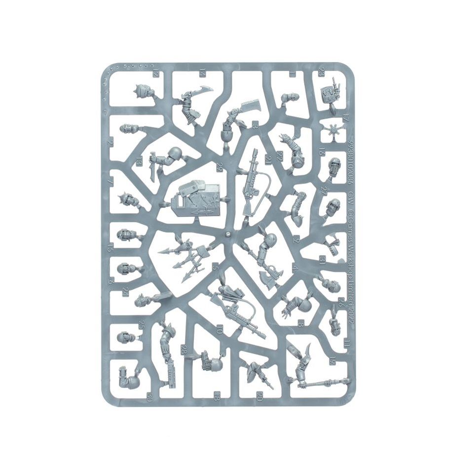 This multipart plastic kit allows you to build 10 Traitor Guard operatives, plus a Traitor Enforcer and his Traitor Ogryn. These miniatures can be used as Blooded operatives in games of Kill Team or fielded with Chaos Space Marines armies in games of Warhammer 40,000. This kit includes a huge variety of weapons, heads, and accessories, allowing you to assemble a truly unique squad of ragged rebels and build Traitor Troopers as specialists for your Kill Team – such as the Sharpshooter, Brimstone Grenadier, Trench Sweeper, and more.