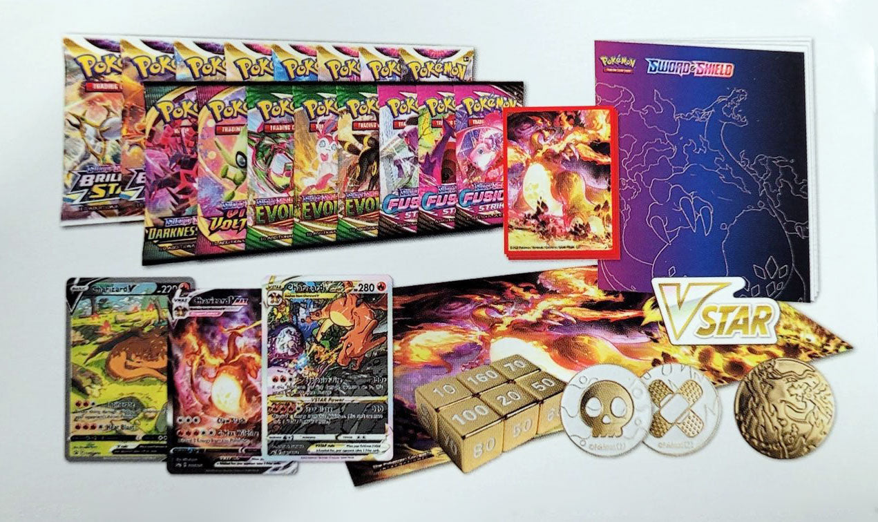 3 etched foil promo cards: Charizard V, Charizard VMAX, and Charizard VSTAR
