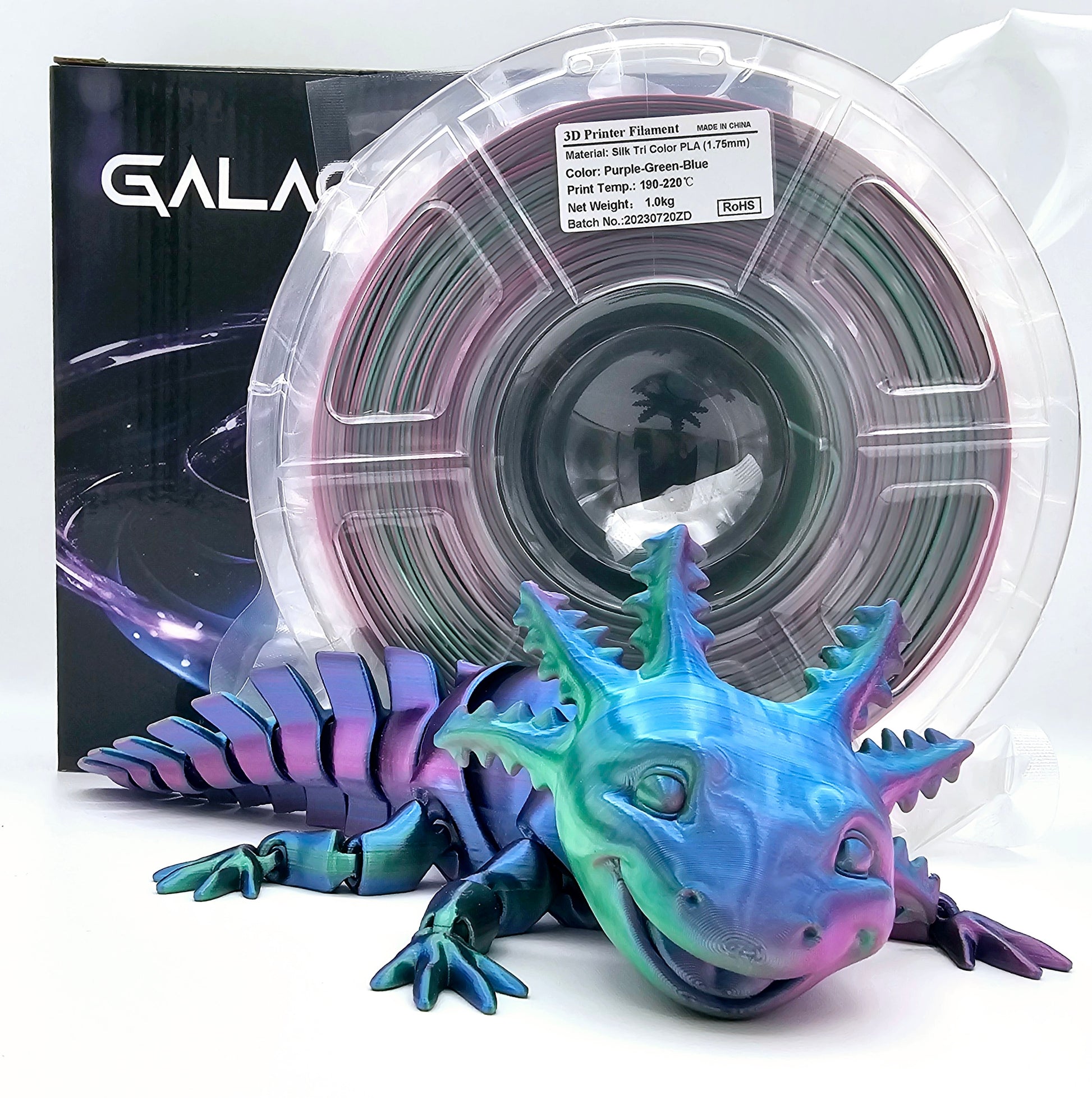 Experience vivid colour shifts with Galactic3D's Silk Tri-Colour PLA Filament. Crafted with triple extrusion, this spool features 3 distinct colours through every strand, giving you a spectrum of colour that appears to shift colours when viewed from different angles.