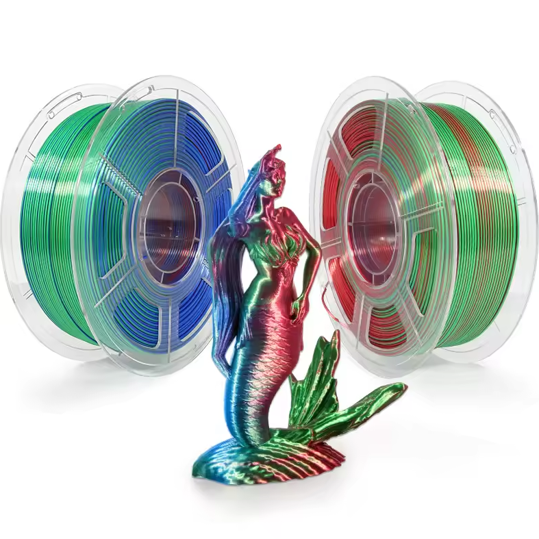 Experience vivid colour shifts with Galactic3D's Silk Tri-Colour PLA Filament. Crafted with triple extrusion, this spool features 3 distinct colours through every strand, giving you a spectrum of colour that appears to shift colours when viewed from different angles.