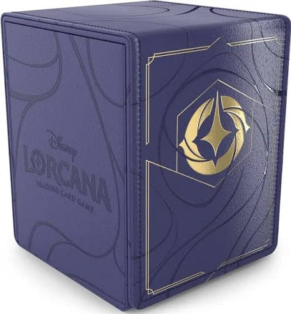 This premium deck box from UltraPRO features the Lorcana emblem, in addition to having a built-in lore tracker on the inner flap!