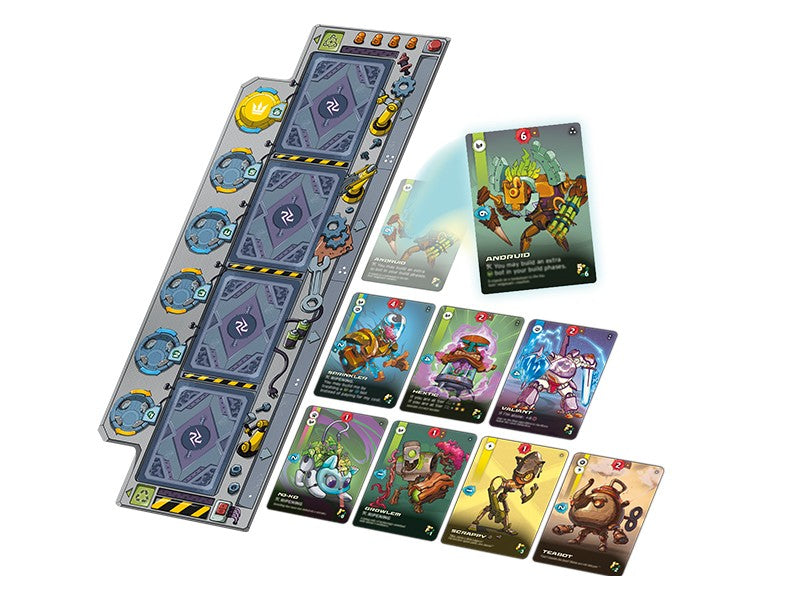 In the Build Phase, you assemble new Bots, adding them to your deck. Choose synergistic Bots, recycle obsolete units, level up to build ever more powerful machines, or push your luck with an aggressive, yet risky plan made by an army of simple automatons.
