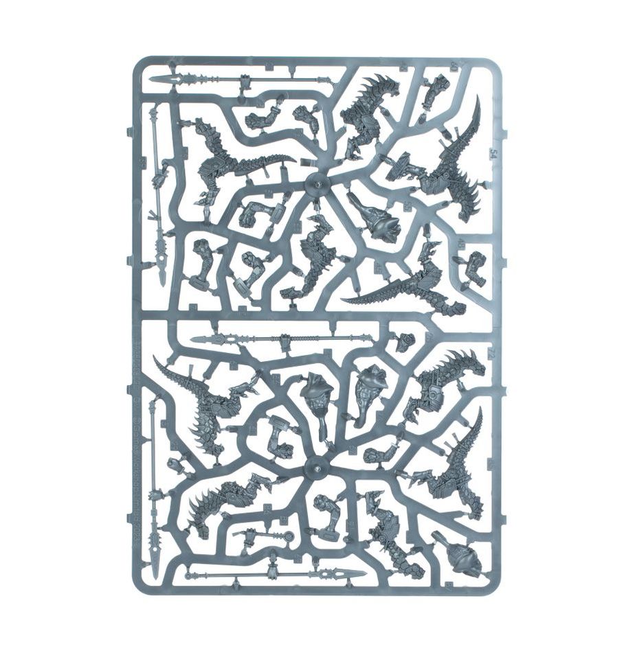 – 1x Saurus Oldblood on Carnosaur (which can alteratively be built as a Saurus Scar-Veteran on Carnosaur, or a Skink Oracle on Troglodon with a Saurus Oldblood on foot)
