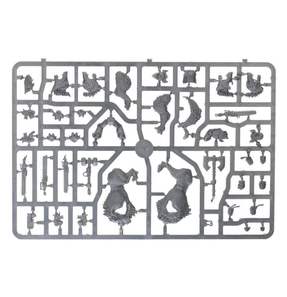 This multi-part plastic boxed set contains 121 components with which to build three Thunderwolf Cavalry models. This set comes with a selection of weaponry, including a frost blade, a power fist, a thunder hammer and three storm shields, as well as optional extras such as grenades, holstered bolt guns, bolt pistols and a choice of six different heads.