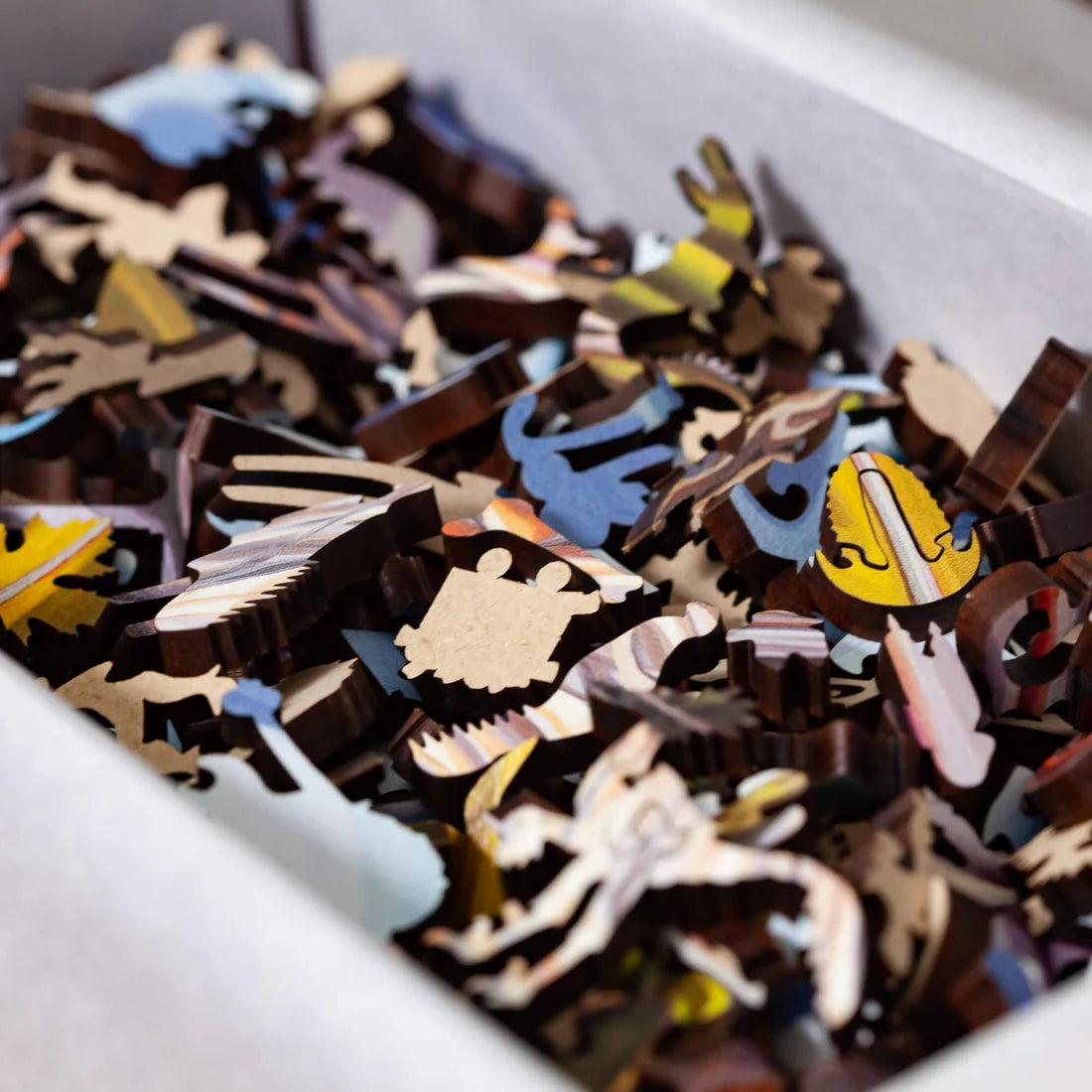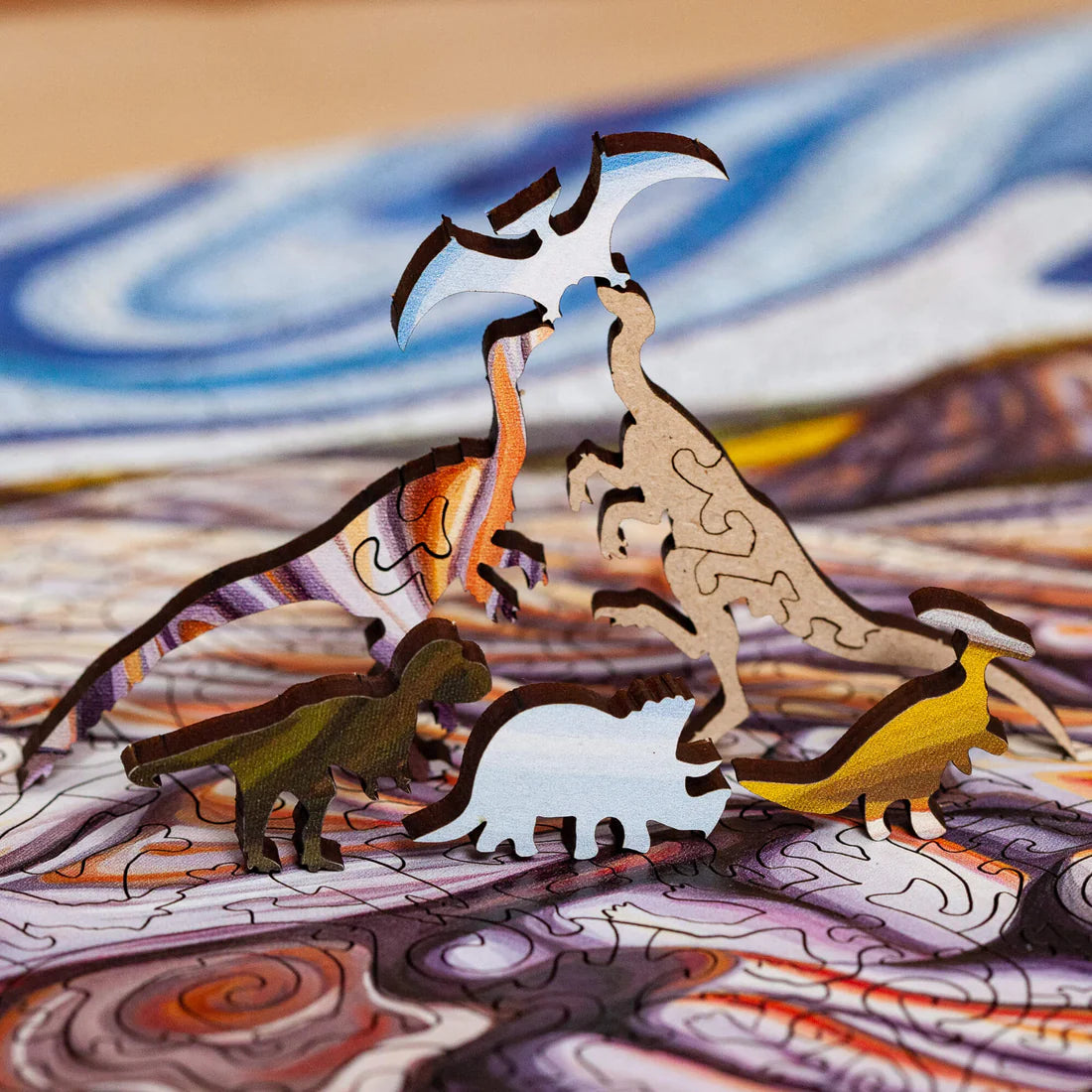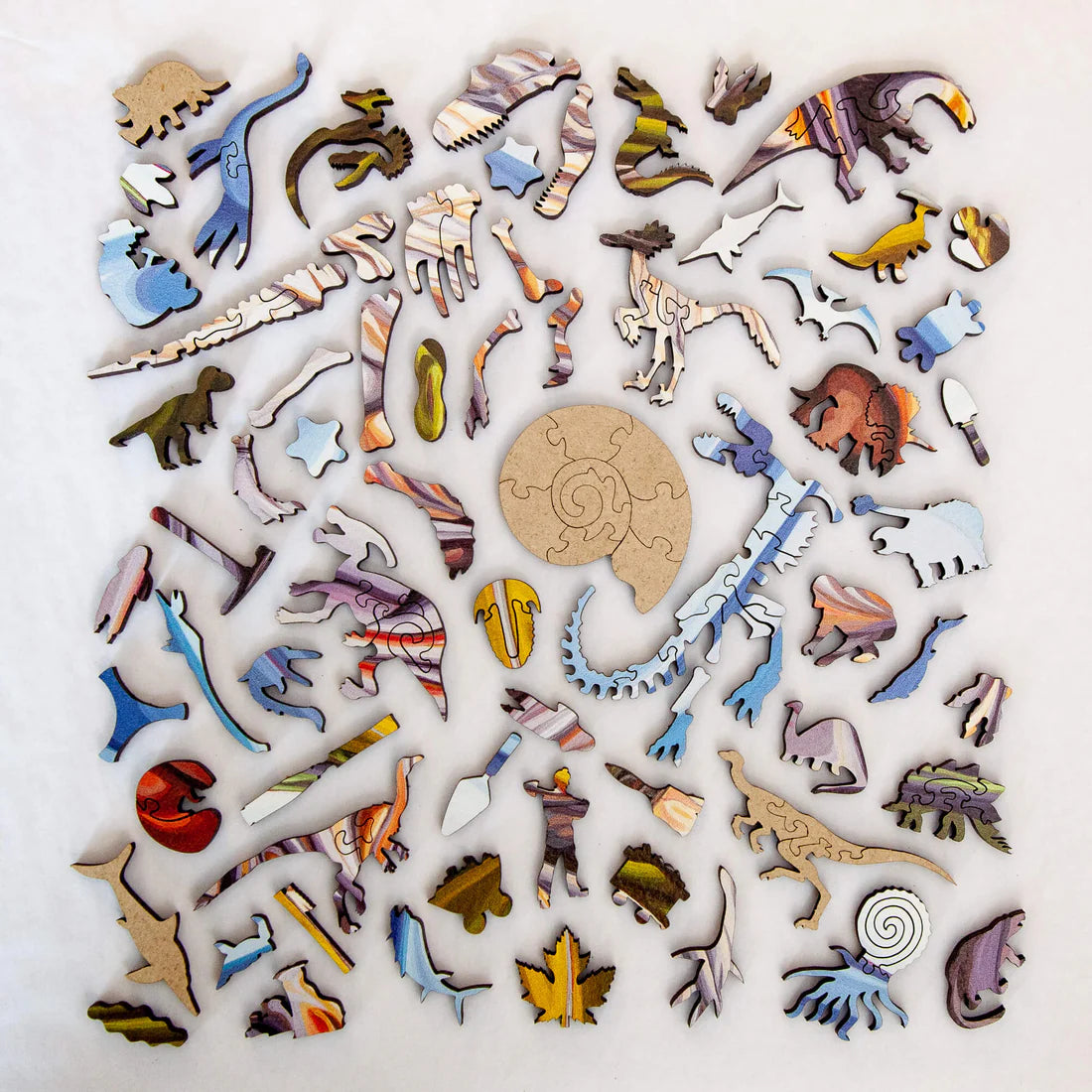 Beyond the creation of a stunning art piece, our goal was to provide a backdrop for a dinosaur-themed puzzle. The experience of solving a StumpCraft jigsaw puzzle is very much akin to that of a paleontologist. Enjoy sifting through the dinosaur bones and see how many species you can recognize and discover!