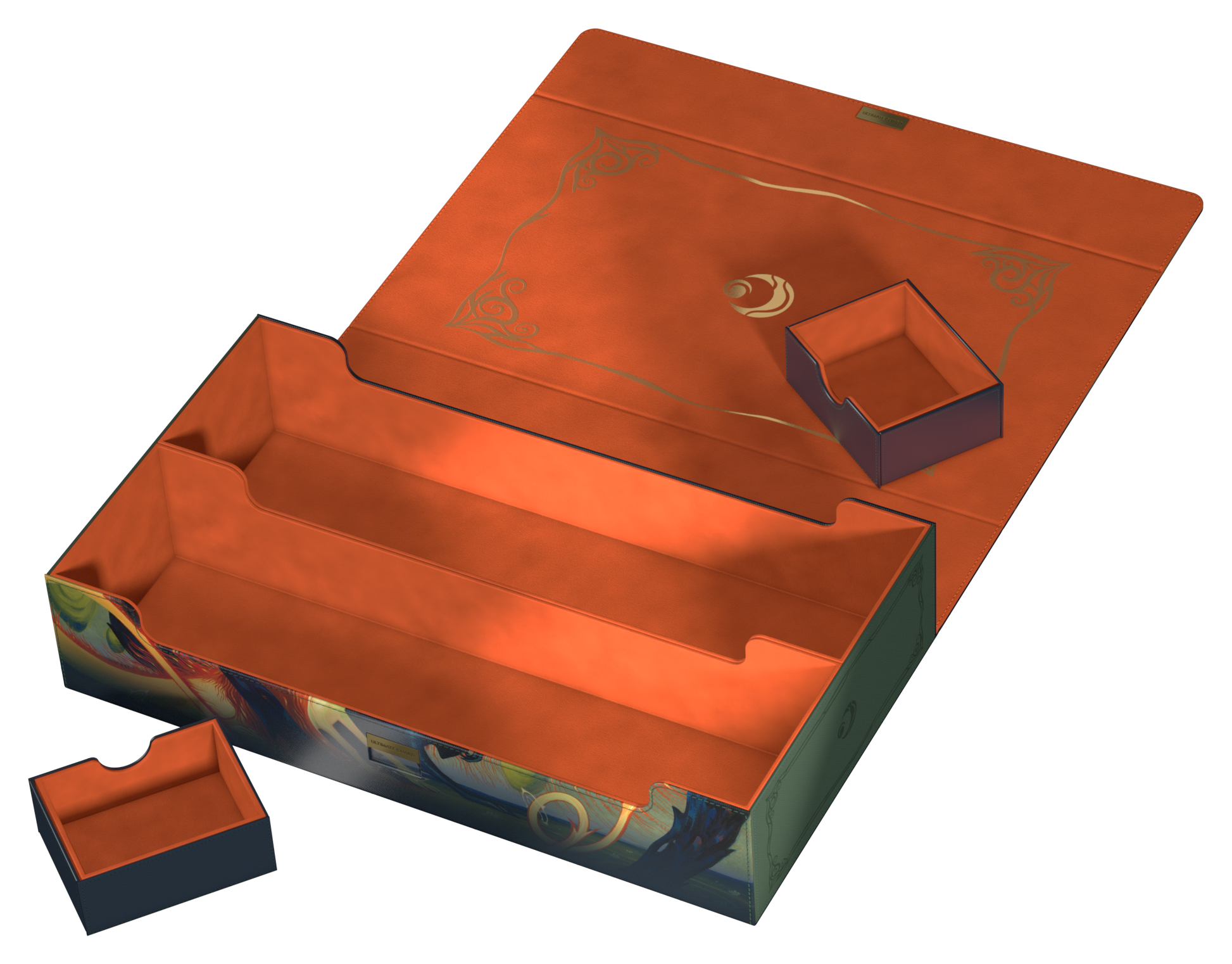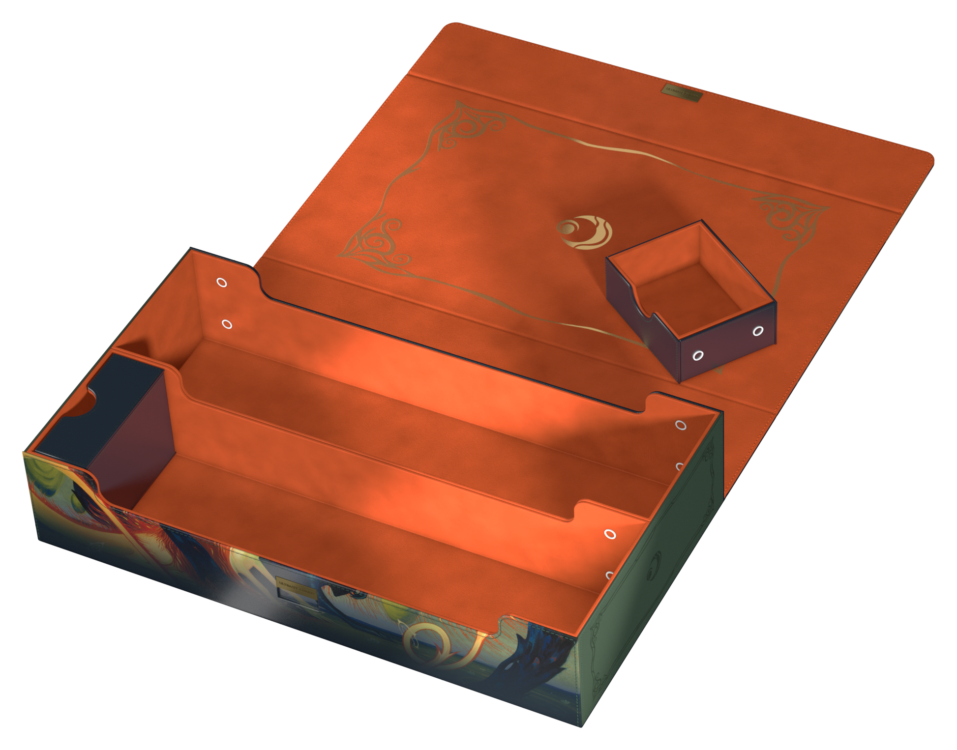 The Omnihive 1000+ Xenoskin is designed to hold multiple deck boxes, dice and/or playmats at once with the help of two flexibly positioned magnetic trays. The deck case, made of the popular and resistant Xenoskin material and printed with officially licensed art from Magic: The Gathering’s upcoming set "Lorwyn Eclipsed", is also the perfect choice for storing a larger collection of individual cards (up to 1000 double-sleeved). The Omnihive 1000+ Xenoskin’s inside is made of an elegant microfiber inner lining, while a strong magnetic closure with additional ZnapClaw mechanism ensures that cards and deck boxes are safe inside the box.