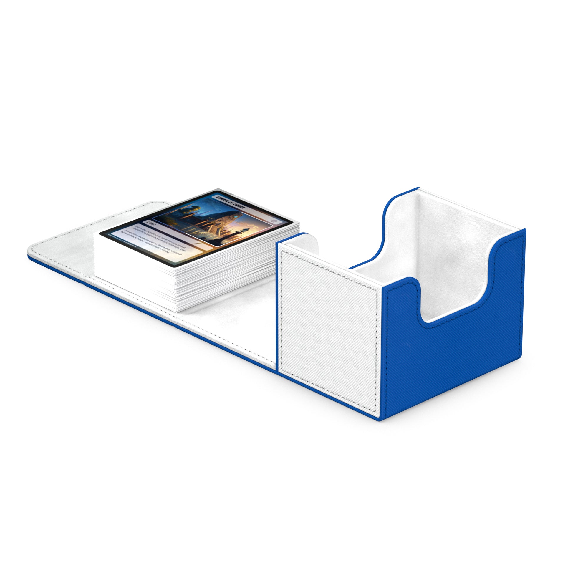 Our convenient Sidewinder 100+ deck case provides easy access to your card deck from both sides. The box is optimized to hold 100 double-sleeved or 120 single-sleeved standard sized cards in Ultimate Guard Sleeves.