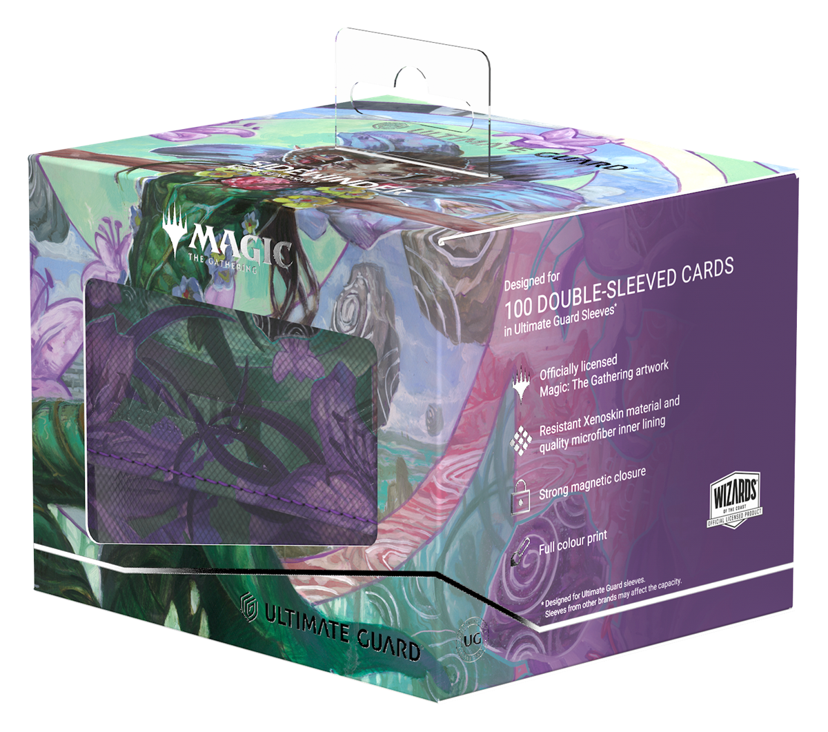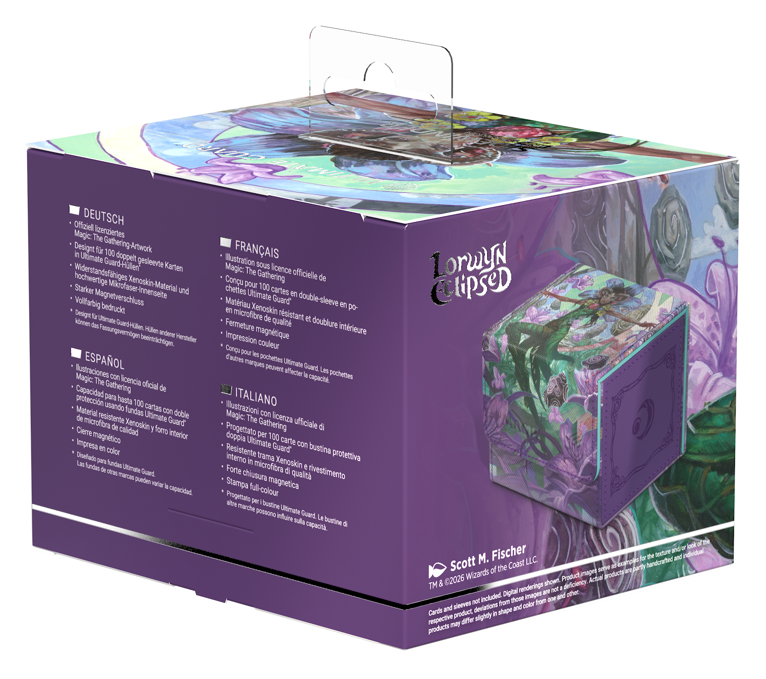 The Sidewinder 100+ Xenoskin is a high-quality TCG deck box that offers premium card protection thanks to its resistant Xenoskin material, microfiber inner lining, and strong magnetic closure, while still granting easy and convenient access to the deck inside. The deck boxes are printed in full color with officially licensed artworks from Magic: The Gathering’s upcoming set "Lorwyn Eclipsed". The Sidewinder 100+ Xenoskin is optimized to hold 100 double-sleeved or 120 single-sleeved cards in Ultimate Guard sleeves.
