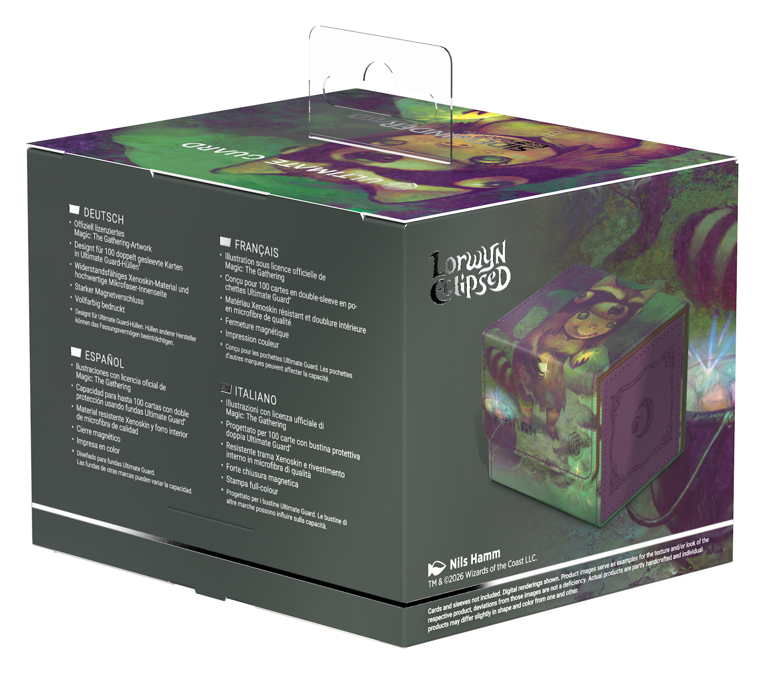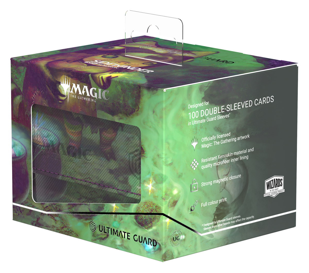 The Sidewinder 100+ Xenoskin is a high-quality TCG deck box that offers premium card protection thanks to its resistant Xenoskin material, microfiber inner lining, and strong magnetic closure, while still granting easy and convenient access to the deck inside. The deck boxes are printed in full color with officially licensed artworks from Magic: The Gathering’s upcoming set "Lorwyn Eclipsed". The Sidewinder 100+ Xenoskin is optimized to hold 100 double-sleeved or 120 single-sleeved cards in Ultimate Guard sleeves.