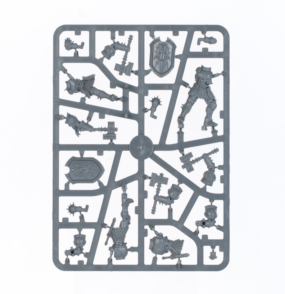This kit comes supplied with 3x Citadel 32mm Round Hex Hole Bases, 3x Citadel 50mm Round Hex Hole Bases, 9x Citadel 40mm Round Hex Hole Bases, and 20x Citadel 25mm Round Hex Hole Bases. These push-fit miniatures can be assembled without glue, and are supplied unpainted – we recommend using Citadel Colour paints.